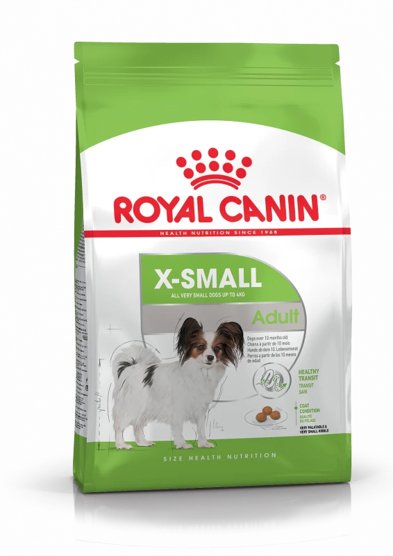 ROYAL CANIN® X-Small Adult est spécialement formulé pour répondre à tous les besoins nutritionnels de votre chien adulte de très petite taille, et convient aux très petits chiens de plus de 10 mois pesant jusqu’à 4 kg.